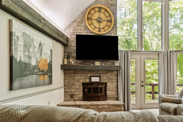 With ample space for everyone, this cozy retreat is perfect for creating lasting memories with family and friends. Step inside to discover a rustic stone wood-burning fireplace, where you can unwind and cozy up on chilly evenings.